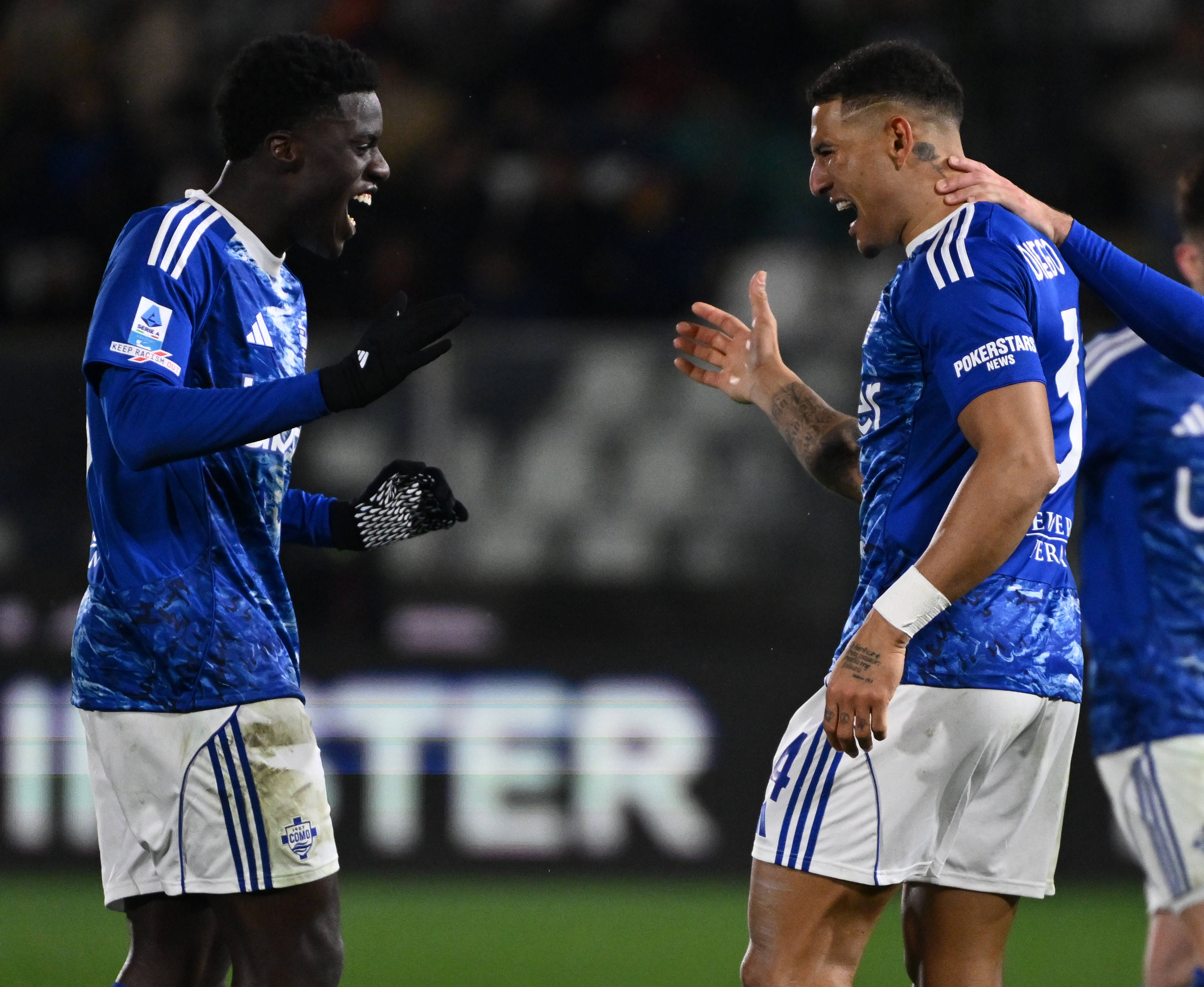 3月15日,科莫队球员迭戈·卡洛斯(右)与队友迪奥庆祝进球。 新华社发
